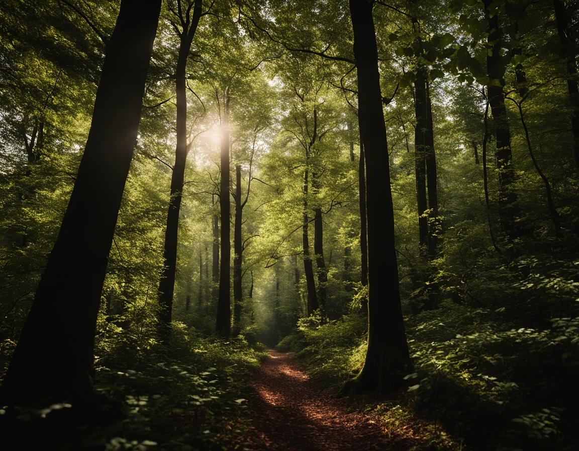 The forest was very old and tall, with trees that reached up to the sky. The leaves on the trees were a deep green, and the air was filled with the sound of birdsong.