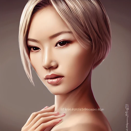 A ultradetailed beautiful portrait painting mature women with blonde short hair, ultra detailed, detailed gorgeous face, beautiful young asian girl, olive skin