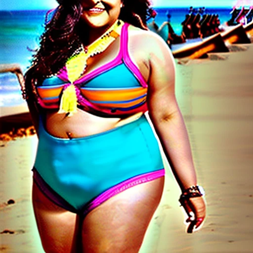 hot Indian sexy plus size bikini girl full picture beautiful cleavage with her colorful bikini panty at the beach
