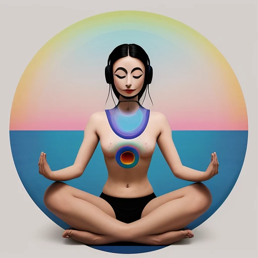 Surrealism Simplicity, ONE CIRCLE, chilled philosophy, yoga style art, SAZ in background, MUSIC ALBUM "EDM" ARTWORK, variation 4--ar 68:128 --stylize 750 --v 5. 2
