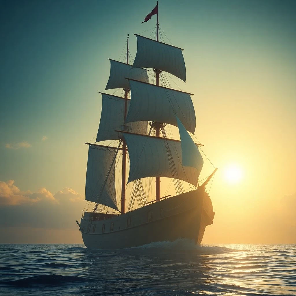Photo of a ultra realistic sailing ship, dramatic light, pale sunrise, cinematic lighting, battered, low angle, trending on artstation, 4k, hyper realistic, focused, extreme details, unreal engine 5, cinematic, masterpiece, art by studio ghibli, intricate artwork by john william turner