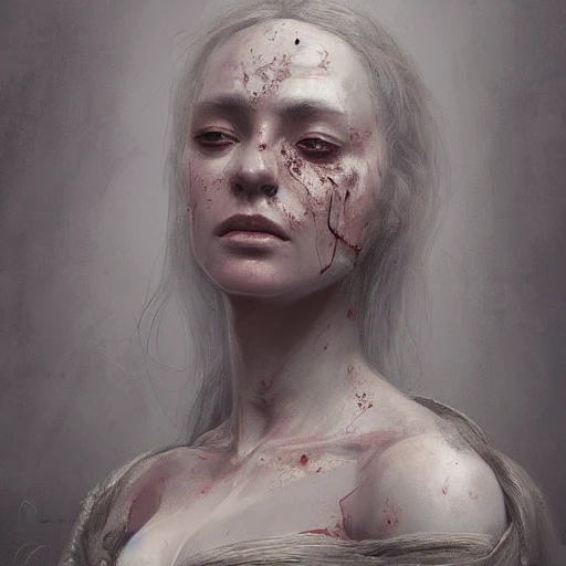 portrait of a woman, sad, cry, gloomy, bloody, intricate, elegant, highly detailed, digital painting, artstation, concept art, matte, sharp focus, illustration, octane render, unreal engine, art by aenaluck and roberto ferri and greg rutkowski, epic fantasy, digital painting