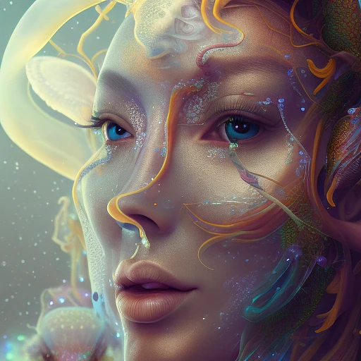 Goddess close-up portrait ribcagel. jellyfish phoenix head, nautilus, orchid, skull, betta fish, bioluminiscent creatures, intricate artwork . octane render, trending on artstation, t symmetrical artwork. cinematic, hyper realism, high detail, octane render, 8k