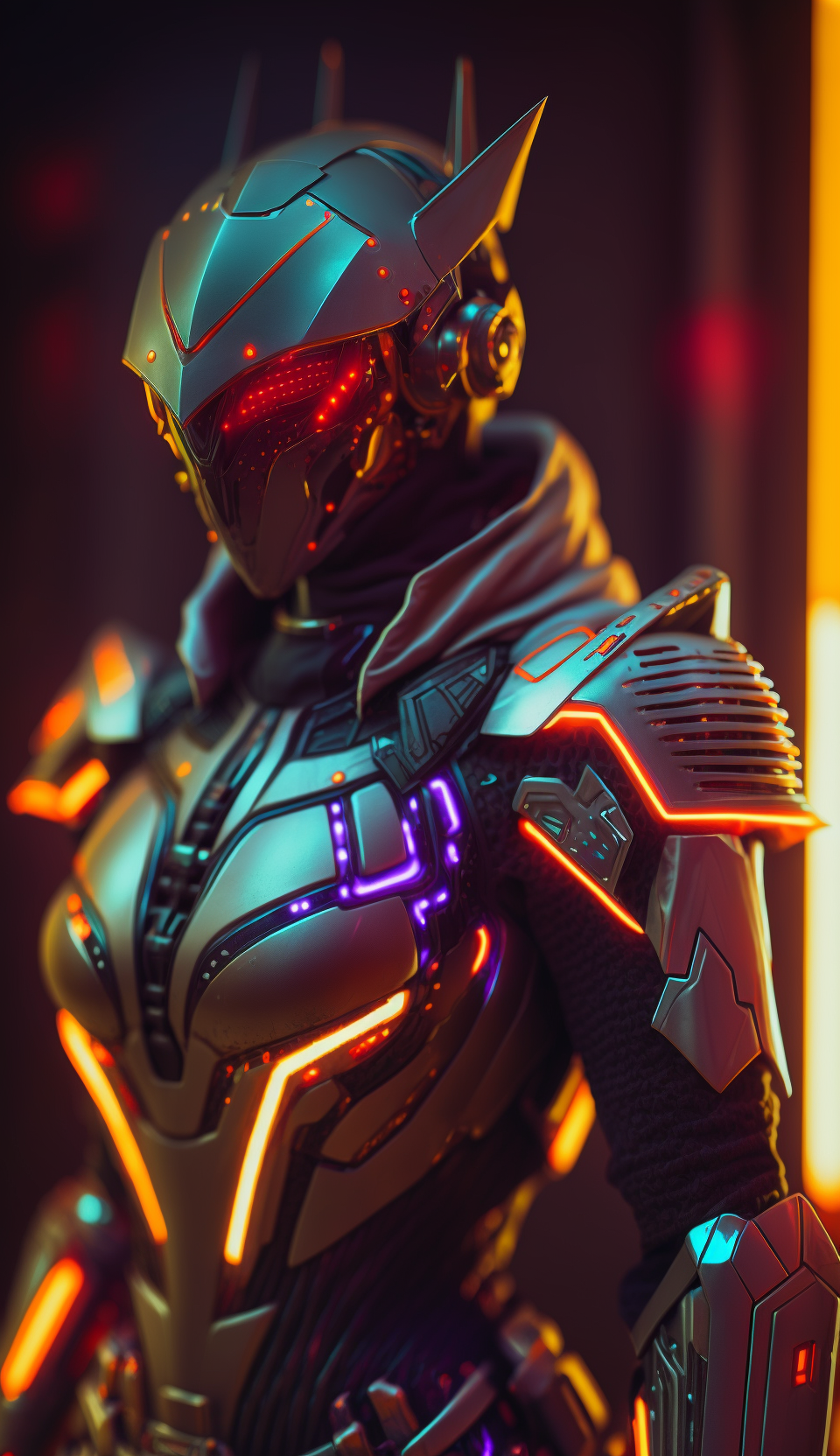 female sci-fi military cyborg, detailed helmet, detailed mask, neon background, matte armor, neon beams, dark atmosphere, blackout, energy beam on background, neon light, 3D renderer, blender renderer, ray tracing, highest quality, highest detail, sci-fi movie style, volume lighting, Bokeh, Long Exposure, 8K, HDR, Triangle, Hexagonal, --no face, hair --q 2 --ar 9:16