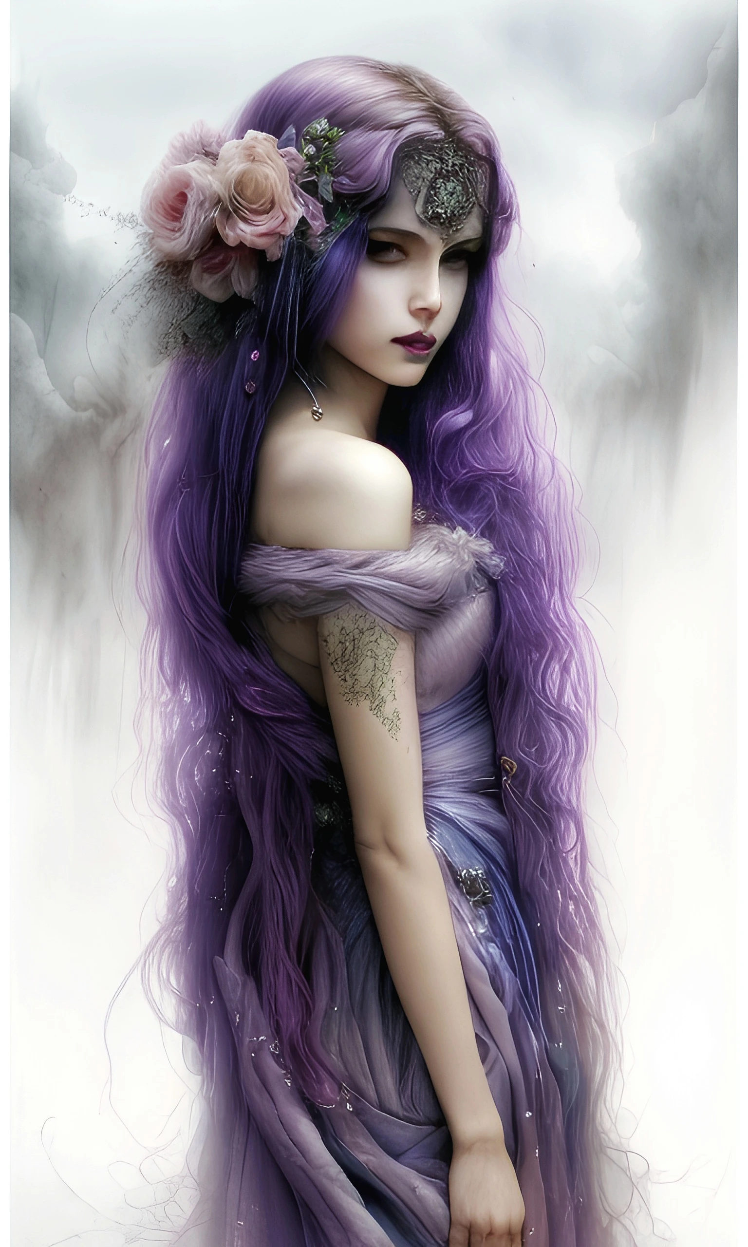 Lilith, beautiful clear face, neon purple flowing hair, manga cover, mystical, dark gothic, stunning, dreamy, ethereal, hypermaximalist, elegant, ornate, luxury, elite, ominous, cgsociety, style of james jean, Tom bagshaw, Roberto Ferri and Marco Mazzoni, hyper-realistic, matte painting, enhanced, neon dress made of flora, insanely detailed and intricate, carved white marble, Mandelbulb fractal, art nouveau architecture, Peter mohrbacher, complex cherry blossom, dreamy, cinematic lighting, Marc Simonetti, Patrick Turner, dark, action pose, violent, vengeful, multiverse, insanely detailed and intricate, golden ratio, sharp focus