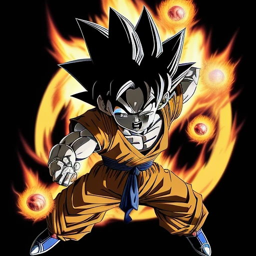 Son Goku is the protagonist of the manga and anime series Dragon Ball z. created by Akira Toriyama in 1984, in transformation into a skull, eyes on fire, flying demon, to attack in battle against Shenlong dragon god