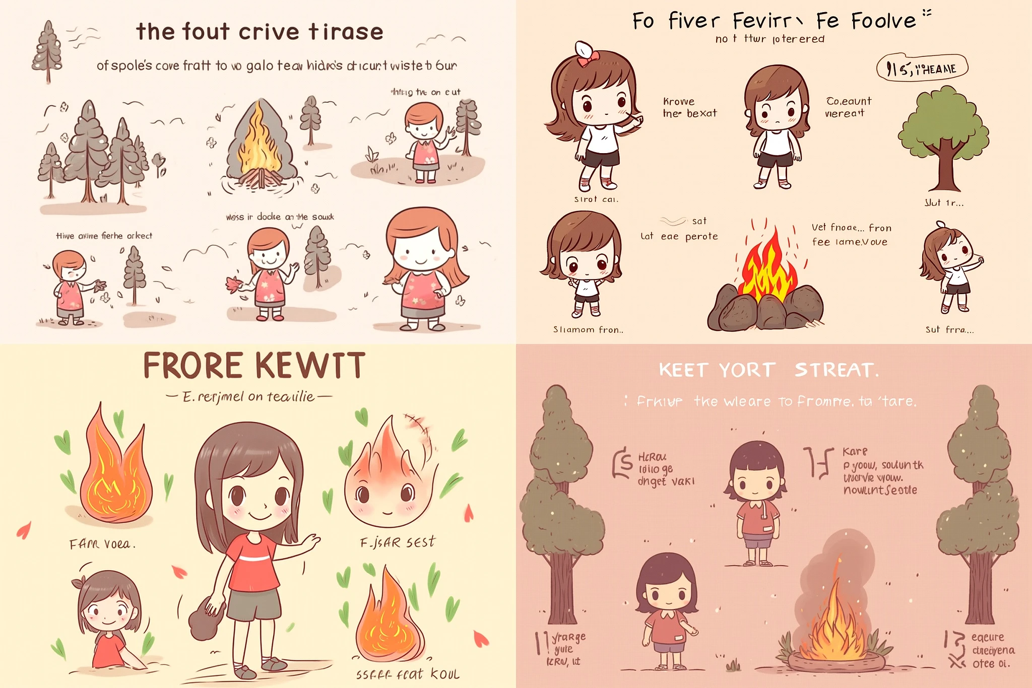 kawaii cute hand drawn instructional guide on how to start a forest fire starring a small girl --v 5 --ar 3:2