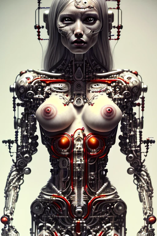 digital painting by greg rutkowki, cyborg girl with tattoos, full body, full of sin, perfect body, red, perfect face, bare skin, intricately detailed beautiful face, supermodel, fantasy, photorealistic, photorealism, trending on artstation, cute big circular reflective eyes, trending on artstation, sharp focus, studio photo, intricate details, highly detailed, by greg rutkowski
