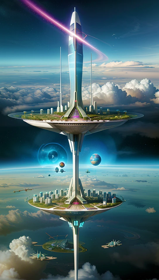 Envision a utopian city suspended among the clouds, a marvel of futuristic architecture and technology. Instruct the artist to design gravity-defying structures, transparent walkways, and futuristic transportation methods. Encourage a sense of awe and wonder as viewers explore this ethereal cityscape where imagination meets innovation