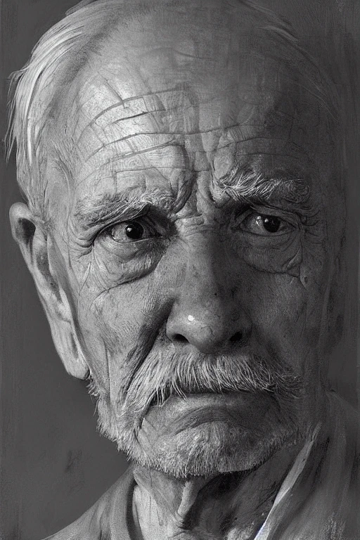 a portrait of a old man in 1930'ies, beautiful painting with highly detailed face by greg rutkowski and magali villanueve black and white volumetric lighting