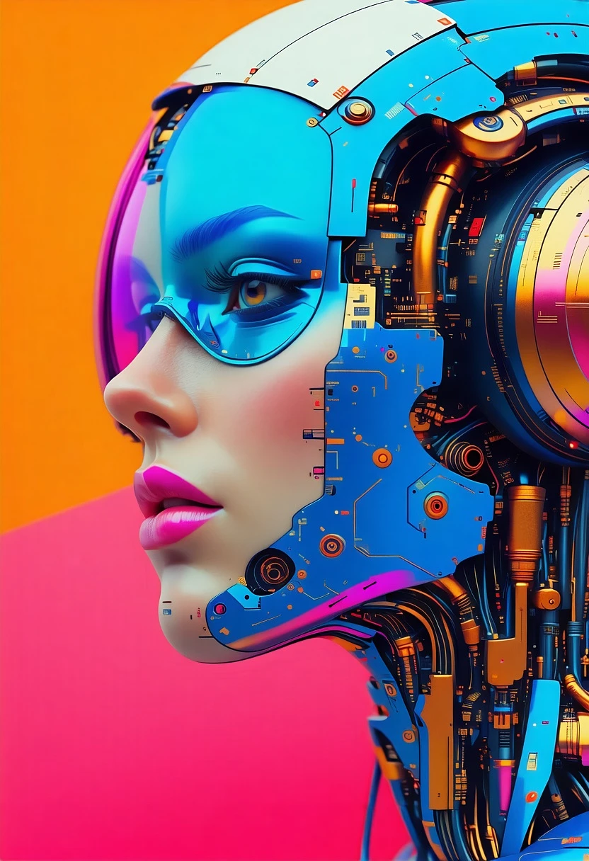 female with a futuristic-looking face, in the style of fantastical contraptions, algorithmic artistry, airbrush art, Alexander Fedosav, richly colored --chaos 75 --ar 1:2 --style raw --profile rsy6uq9 --stylize 750 --v 6. 1