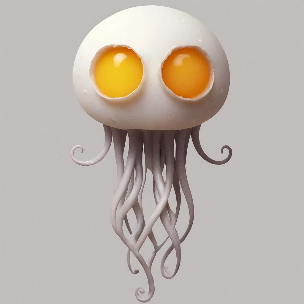 (an illustration of a single jellyfish designed to resemble a fried egg making it even cuter than before. The jellyfish has a cheerful yellow bell representing the yolk and its body is simplified and fluid resembling the white of an egg. The tentacles are longer and more fluid adding to the whimsical charm of the design. Maintain the minimalist and cartoonish style with a solid muted grey background to ensure the jellyfish stands out as the focal point. Aim for an ultra-cute appearance with exaggerated features and expressions ideal for captivating children's attention or as a delightful graphic element in design:1)