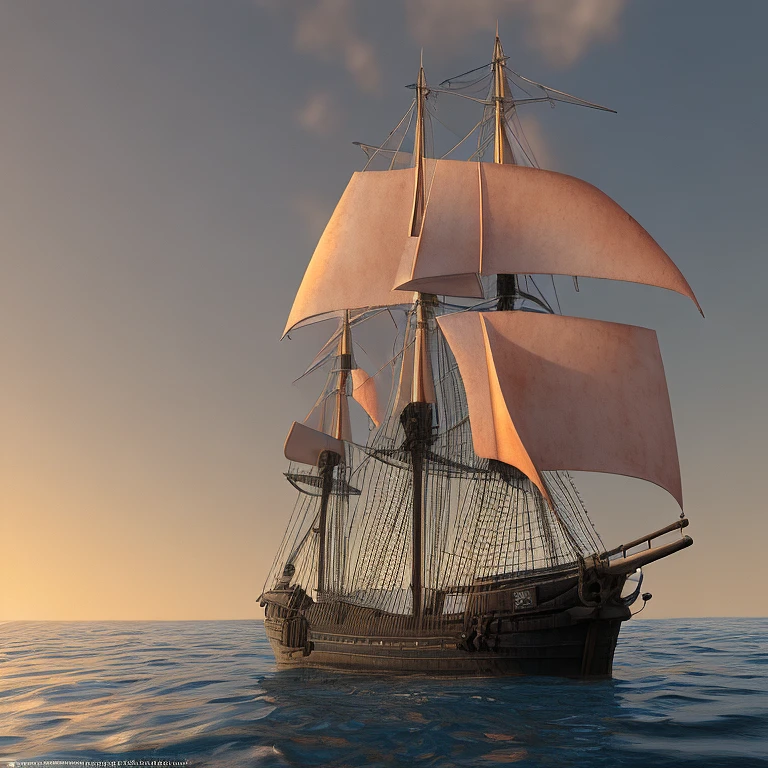 Photo of a ultra realistic sailing ship, dramatic light, pale sunrise, cinematic lighting, battered, low angle, trending on artstation, 4k, hyper realistic, focused, extreme details, unreal engine 5, cinematic, masterpiece, art by studio ghibli, intricate artwork by john william turner