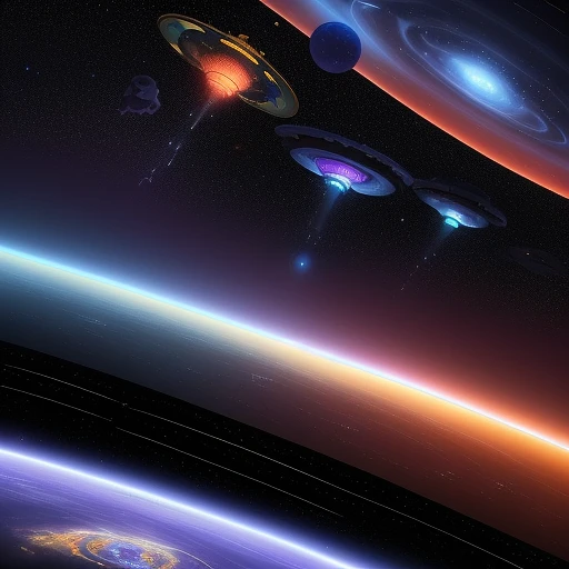 the vast ness of space with shing stars and planets that shine with vibrant colors and 3 space stations that look like tubes with solar panels and regular windows to look out into the vastness, there should be mechs working on the exterior and space ships flying by