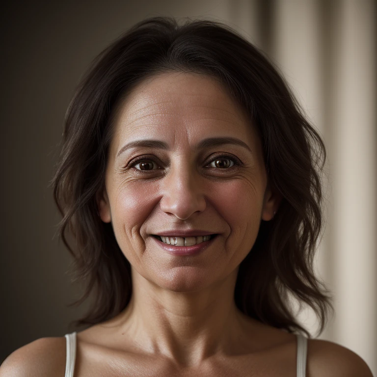 hyper realistic headshot photo of a 40 year old, jewish woman, looking into the camera, smiling slightly, ultrarealistic, soft lighting, 8k