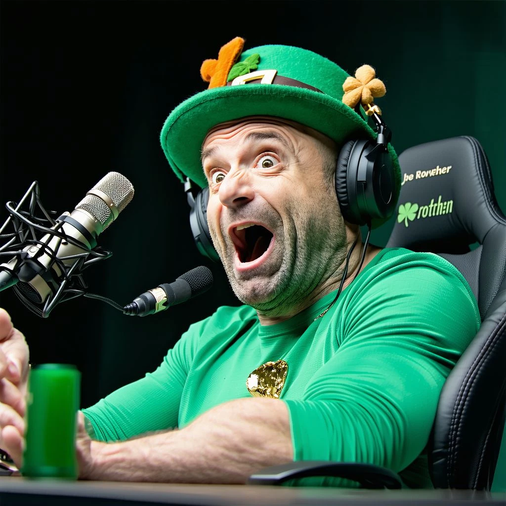 Joe Rogan catches a leprechaun breaking onto his set during a podcast and chases after it in a panicked frenzy