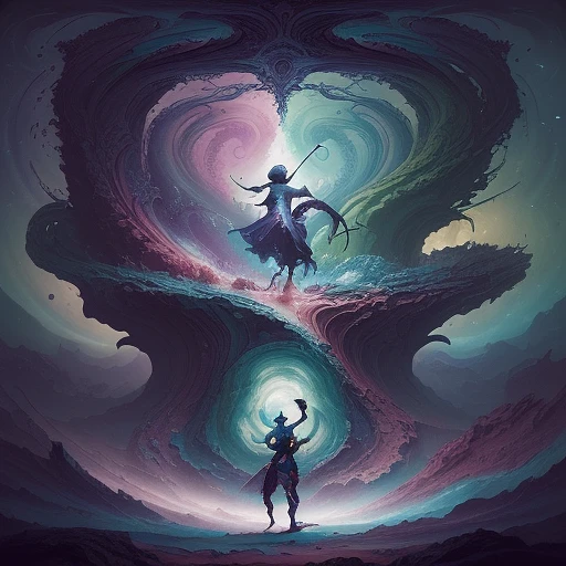 a surreal picture with harengon swashbuckler in it, in the style of swirling colors, aleksi briclot, cosmic landscape, peter mohrbacher, intensely colorful figuration, realistic hyper-detail, splattered/dripped --ar 63:128 --stylize 750 --v 6