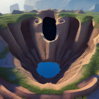 hole in dirt, symmetrical artwork. cinematic, hyper realism, high detail, octane render, 8k. background: white