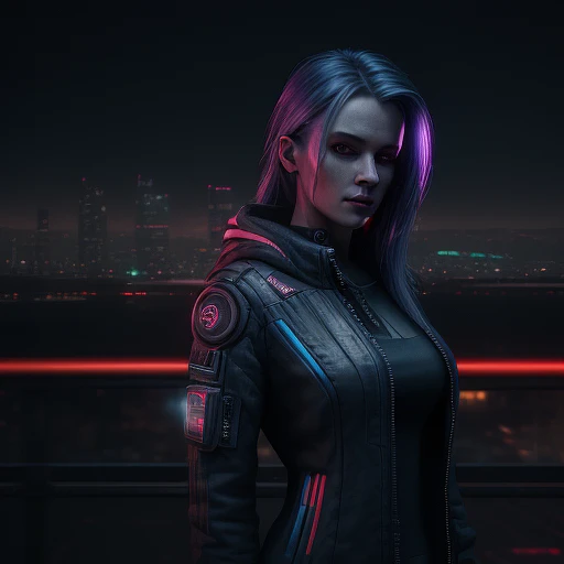 Beautiful swedish woman, cyberpunk, dark indigo red light, twilight. octane render, trending on artstation. cityscape in the background. cinematic, hyper realism, high detail, octane render, 8k