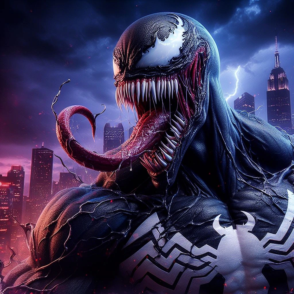 close up of Venom of Marvel screaming, in a fit of rage, Masterpiece, gigantic scale, ascii-art --no mockup, signature, watermark, username, low resolution, worst quality, low quality, jpeg artefacts, blurry, cropped, badly framed --ar 9:16 --c 10 --s 100 --v 4