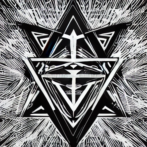 triangolar vector art, sigil, sci fi, negative space, black and white, logo, logo design --stylize 60000