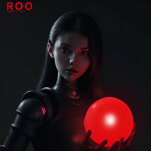 Cover art of Rood Magazine featuring a sphere, a worm, and a glowing red light, styled as conceptual portraiture. The design is made of rubber, showcasing futuristic robots and oversized objects. Inspired by Elina Karimova, it incorporates light black tones and technology-based art elements --ar 4:5 --quality 2 --style raw --stylize 500 --v 6. 1