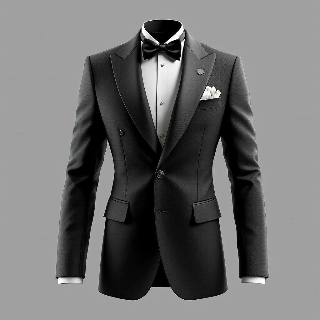 Front view of a Tom Ford blazer, tailored fashion design, featuring a bowtie and pocket square at the lapel, shot from a side angle, designed by Calvin Klein, refined color scheme, Backlight, clean and gray background::2, Unreal engine, V-ray --ar 2:3 --v 5. 1 --q 2 --no mannequin