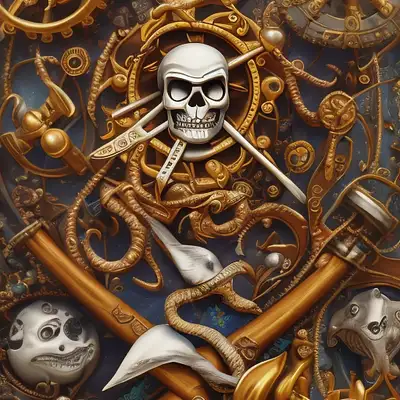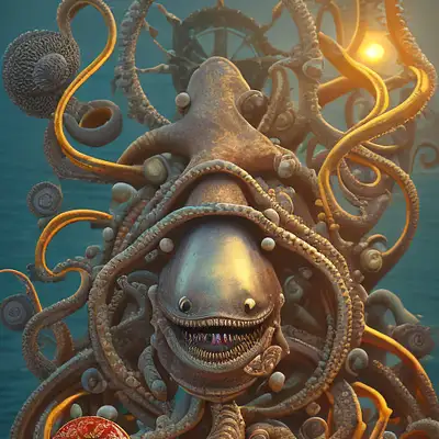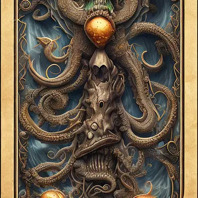 collectable card border. nautilus, pirate, seagull, crab monster, kraken, pirate sword, pirate pistol, cog wheel, pirate ship, dusk, violent ocean, dramatic shadows, intricate artwork . octane render, symmetrical artwork. cinematic, hyper realism, high detail, octane render, 8k