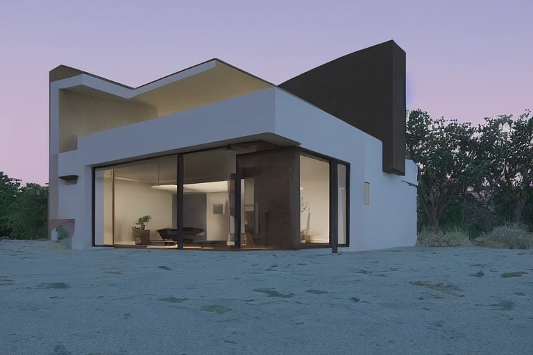 small modern villa, Brown cubic architecture, Bauhaus and Futuristic architecture style, sunrise, No tree, small villa, Desert, ash color Concrete, Cubic, geometric, detailed, ultra-realistic, unreal engine, post-processing, 8k octane, de-noise, in frame, centered, wide angle camera, cinematic look, vray, highly detailed buildings, 8k resolution 3d scanned materials, unreal engine, Octane render, hyper realistic, trending on artstation and cgsociety, very bright picture, realistic style