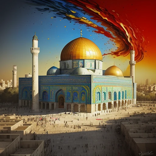 create inspiration . moving , powerful image that will inspire the people of Palestine realistic image with oil painting abstract style splattered style in national colours with Al Aqsa mosque in the background