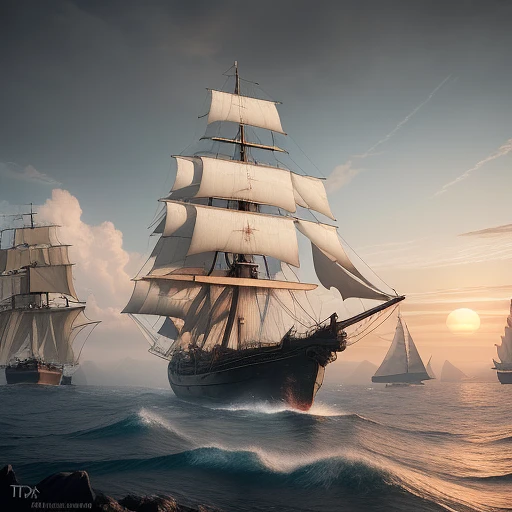 Photo of a ultra realistic sailing ship, dramatic light, pale sunrise, cinematic lighting, battered, low angle, trending on artstation, 4k, hyper realistic, focused, extreme details, unreal engine 5, cinematic, masterpiece, art by studio ghibli, intricate artwork by john william turner
