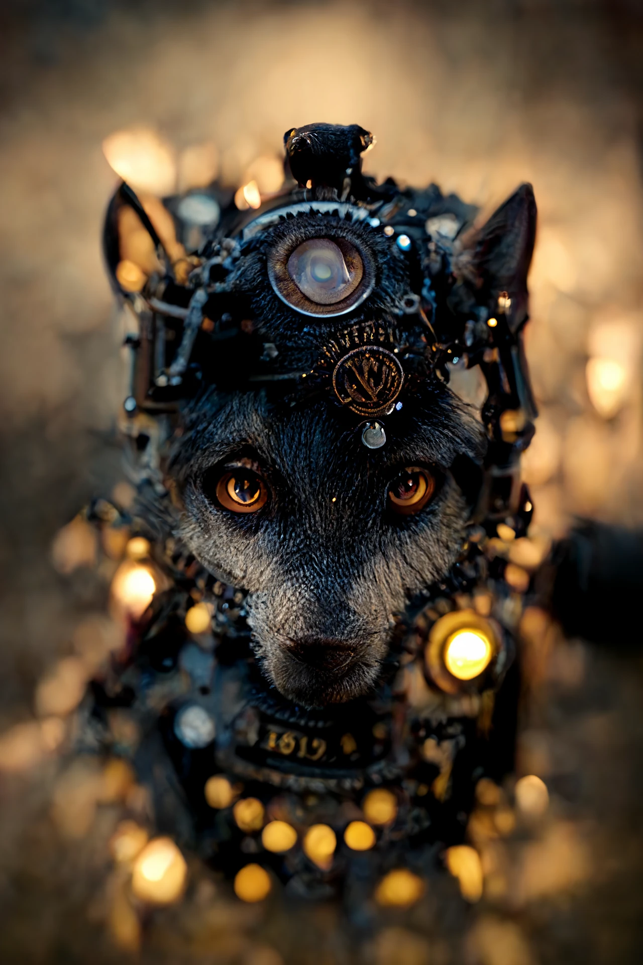 steampunk wolf made of gears with sapphires inlayed all over it, steampunk style wolf, highly detailed gears and metal parts cinematic light octane render, highly detailed unreal engine wide angle 8k --ar 2:3