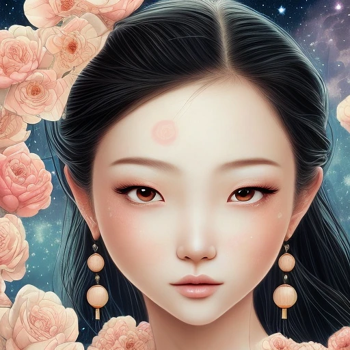 Cartoon, Chinese girl, close - up, night, starry sky, moon, movie, healing, flowers, removal of animals, no cartoon characters, close - up, super detail, exquisite, ultra - high definition, exquisite, ultra - high definition, ( 8k) , exquisite, ultra - high definition, HDR, ultra - high definition, 8k ( HDR, UHD, 4K, 8k and 64K) , best quality, masterpiece, highly detailed, ultra - fine painting, extreme detail description, professional, vivid colors,
