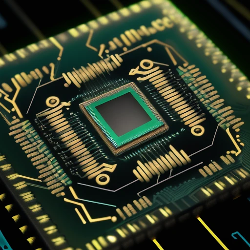 a close up of a CPU chip on a printed circuit board, computer graphics by Armin Baumgarten, quantum wavetracing, circuitry, style of Nikon D850, macro photography, 32k UHD, high detailed, focus stacking, art reminiscent of National Geographic photos, CPU chip with a subtle glowing effect, small ruler included for scale reference, futuristic digital display overlay, dynamic shadow effect from adjusted lighting, reflection of the chip on the board, experiment with different angles for a more intriguing composition