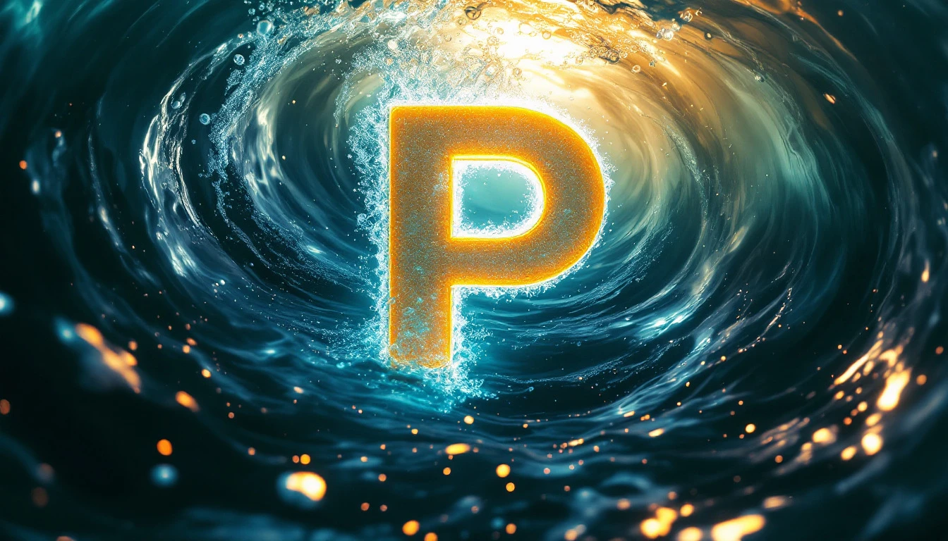 3D render of the letter [P] , periwinkle and canary yellow color blend, under the water, swirling water currents, bright light emanating from center, high contrast, eerie atmosphere, photorealistic rendering, rippling water surface, liquid effect, hyper-detailed water textures, dramatic lighting, 8K resolution --ar 9:16 --style raw --personalize c84qxg1 --v 6. 1