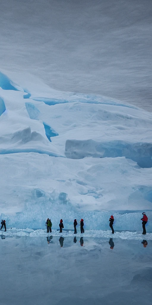Multiple connecting tunnels in antartica bellow thin ice, multiple people moving around the tunnels, The wind chimes of years ago floated in the still overcast day, a light leaking from my ears, buzzing, distant glaciers rushing towards me. facinating and imposing, fantasy digital art, octane render, beautiful composition, trending on artstation, award-winning photograph, masterpiece