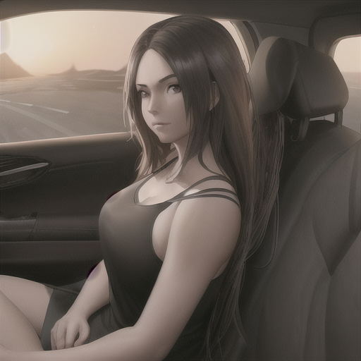 Anything prompt: photo of a woman, at the passenger seat of a car, ...