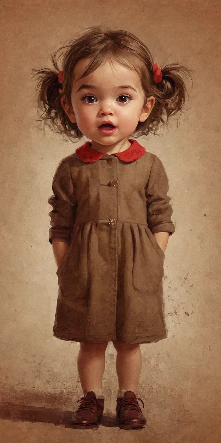 cute little girl, Digital painting, Graphic tablet/Photoshop (or similar software) , Contemporary era, Primarily warm tones with reds and browns.