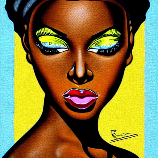 high resolution, portrait of beautiful dark skin young african-american woman, urban art, pop art, artgerm, by Roy Lichtenstein