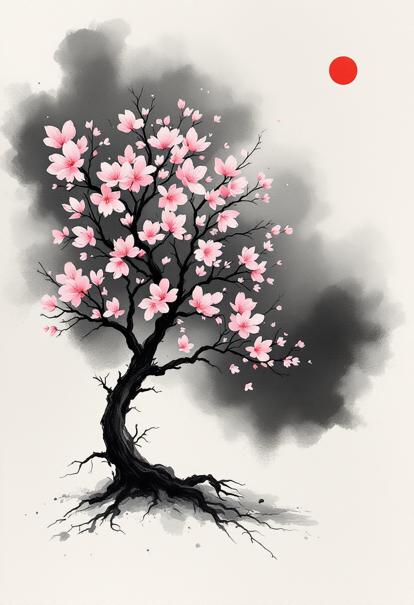 FLUX prompt: Abstract ink wash painting, inspired by a lone, st...