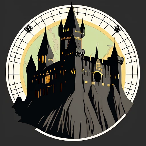 Black Castle Icon from an old map in the style of Lord of the rings Transparent background