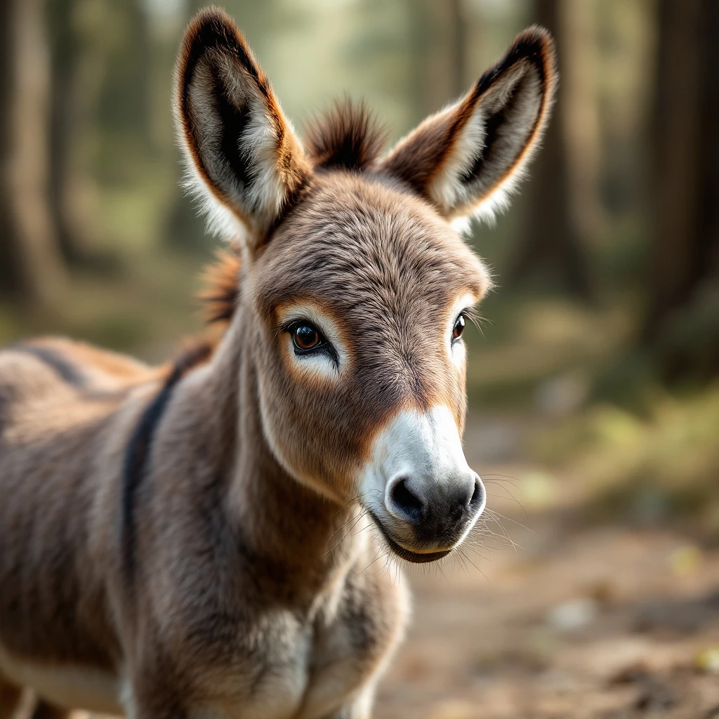 Create a photo-realistic image of a playful baby donkey