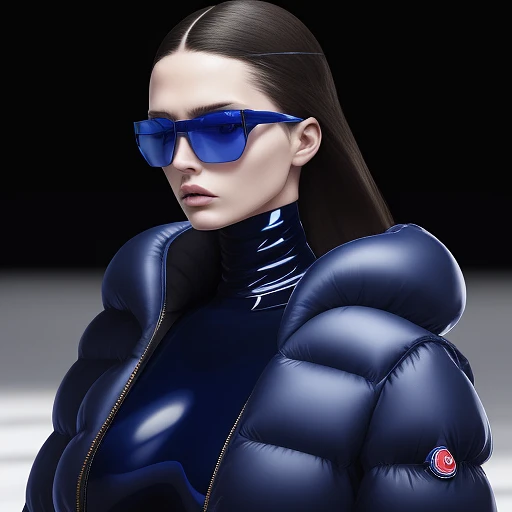 Fashion shoot, Jacquemus and Moncler collaboration: dark blue translucent futuristic sunglasses, hyper-realistic, detailed 8k, realistic --ar 2:3 --s 750