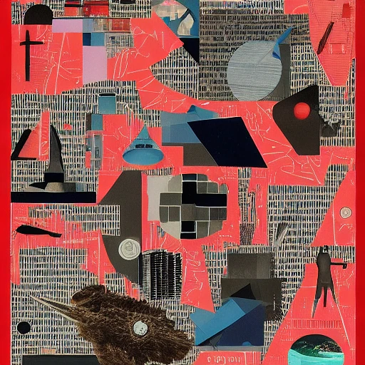 A mid-century modern collage, made of random shapes from fashion and science magazines and text books, of 2001: A Space Odyssey film poster --q 2 --v 5 --ar 3:4 (