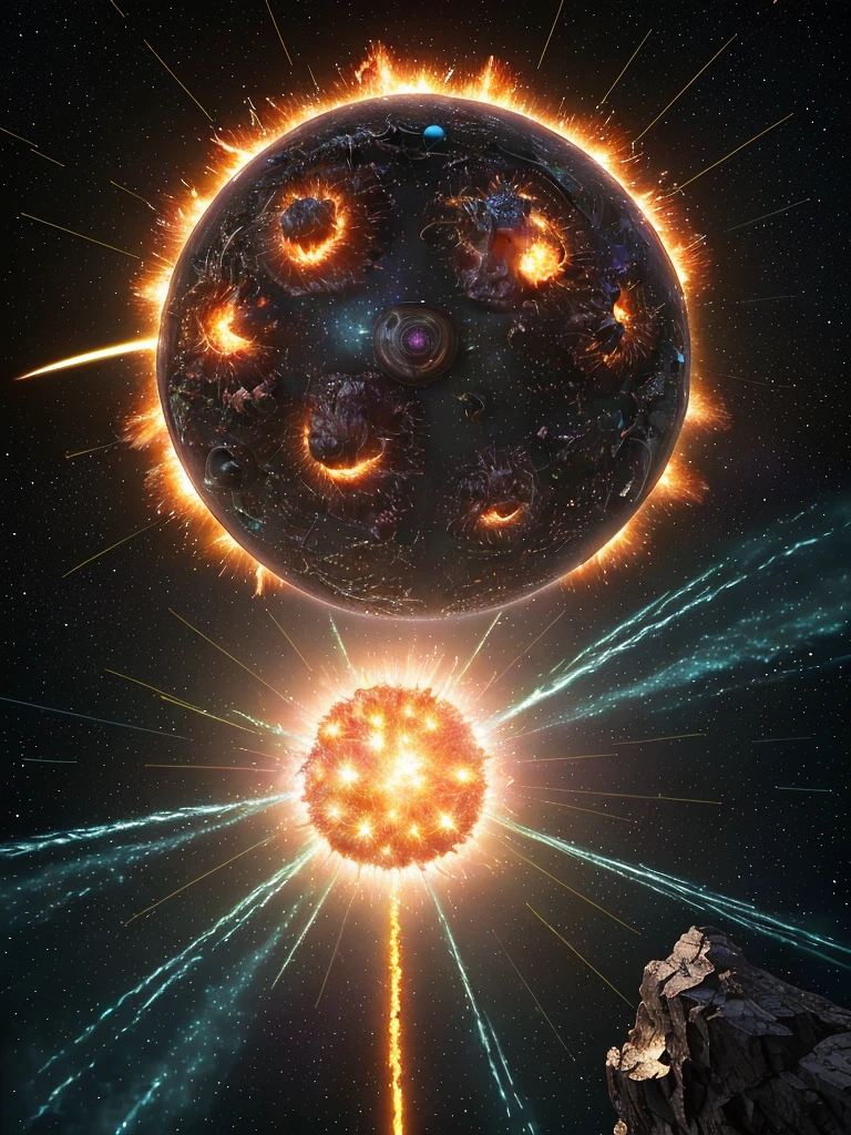 Photo of a ultra realistic star explosion, bright light, cinematic lighting, battered, low angle, trending on artstation, 8k ultra HD, hyper realistic, focused, extreme details, unreal engine 5, cinematic, masterpiece, art by studio ghibli, intricate artwork by john william turner