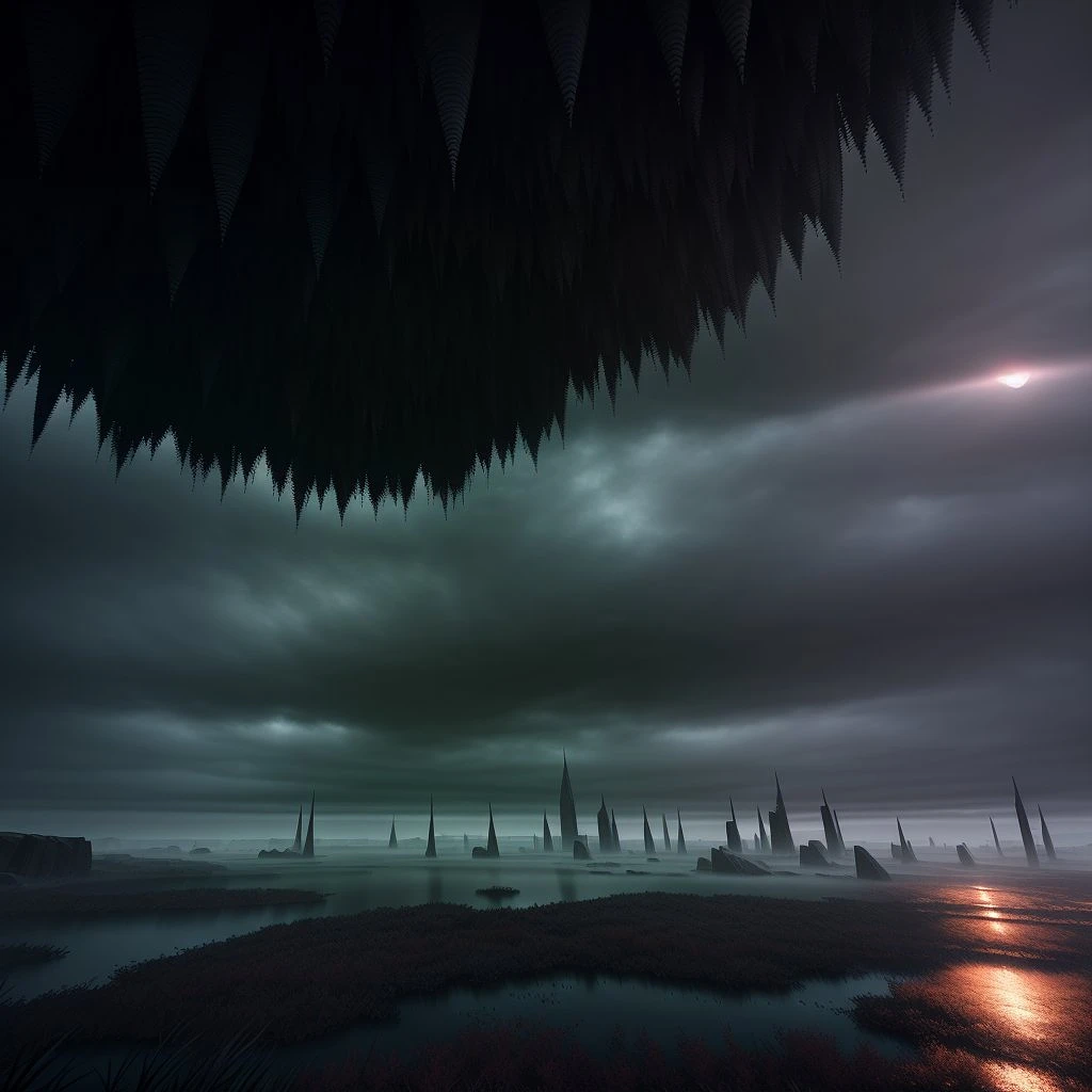 an empty world, drone view, ATMOSPHERIC GOTHIC HORROR , Midjourney style, Lovecraftian | horror | unreal engine | raytracing| ray tracing, hyper details, very dark lighting, heavy shadows, detailed, ( photo realistic, realistic, dramatic, dark, sharp focus, 8k) . wide angle, digital art, realistic painting, dnd, trending on artstation, soft natural lighting, magic photography, dramatic lighting, photorealism, excessive detailing, intricate, hyper detailed, artstation, concept art, smooth, ray tracing, hyper details, volumetric lighting, cinematic lights, 35mm lens