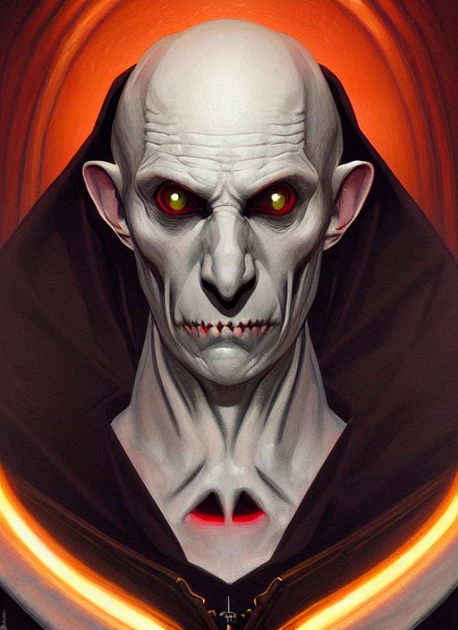 symmetry! ! portrait of nosferatu, intricate, glowing eyes! ! elegant, highly detailed, digital painting, artstation, concept art, smooth, sharp focus, illustration, art by artgerm and greg rutkowski and alphonse mucha