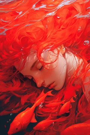 Mysterious creature dissolving into vibrant red liquid silky paint, gentle oceanic waves, ethereal lighting, photo close-up, by Geof Darrow, shot by Natalia Drepina, serene view, captivating background::3 --ar 2:3 --niji 5