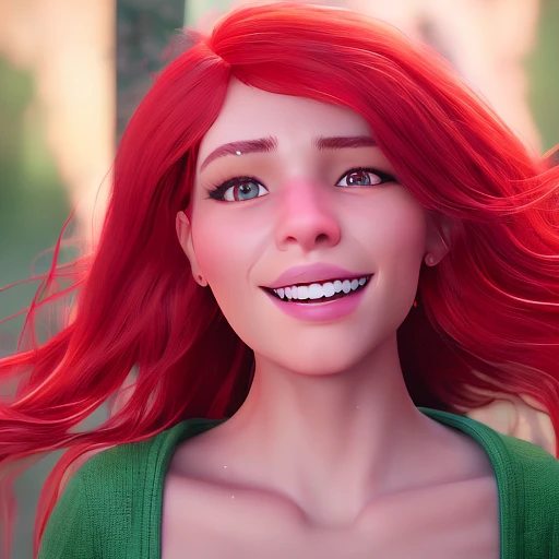 a beautiful girl with cascading red hair, deep green eyes, and a smile that could brighten up any room, 4k, unreal engine 5, cinematic