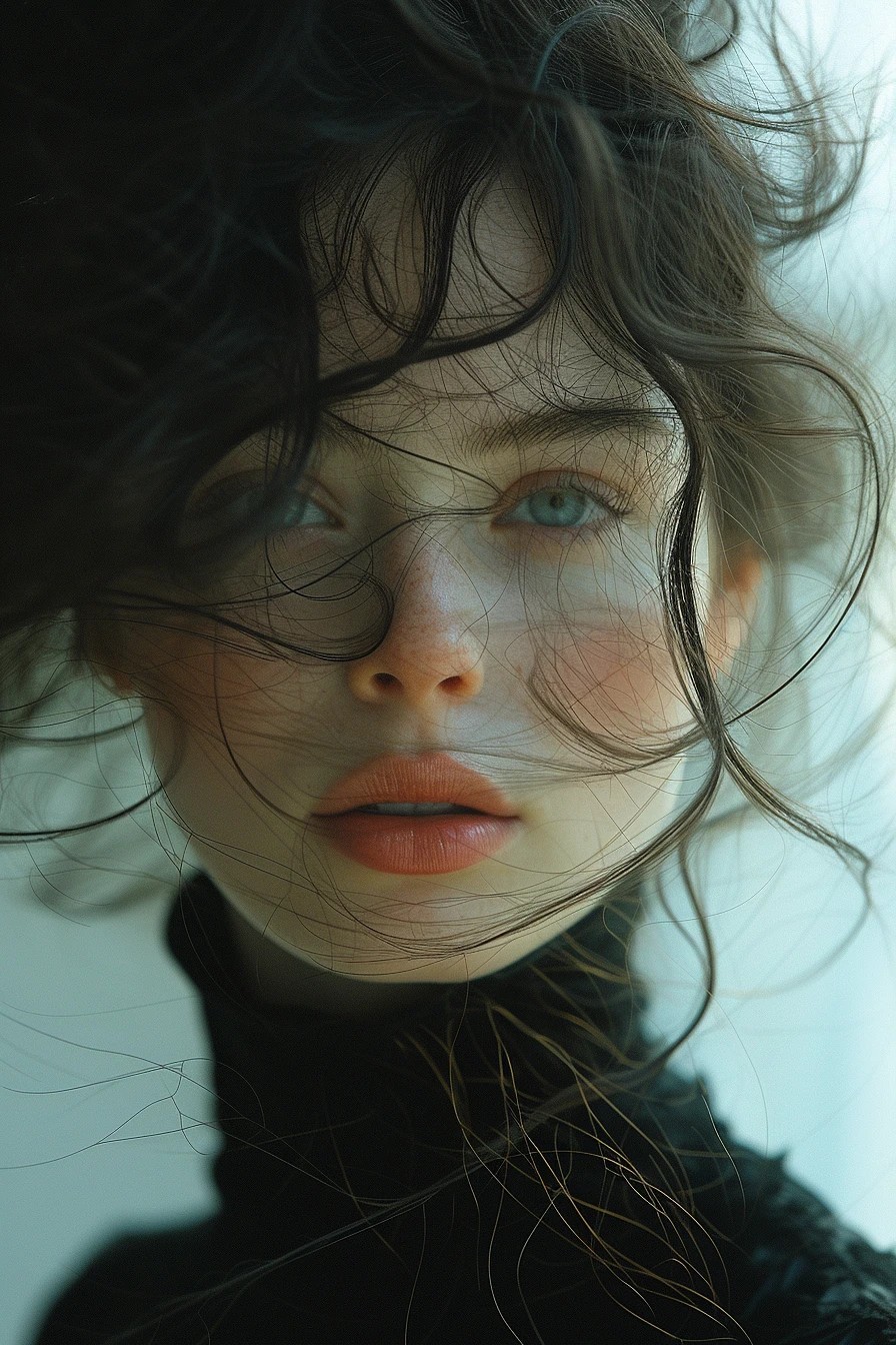 a blurry image of a woman, vogue cover, in the style of olivier valsecchi, lensbaby effect, miho hirano, intense emotional expression, minimalism with movement, leica i, gloomy --ar 73:110 --stylize 750 --v 6